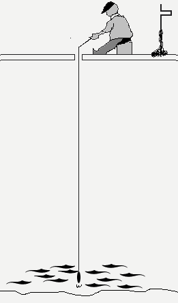 När du väl fått den första fisken att hugga så gäller det att snabbt få upp denna,kroka av och släppa ned pimpeln igen. På så sätt så hugger nästa fisk som "köar" framför kroken och det gäller att utnyttja abborrens nyfikenhet och avundsjuka. Är det kallt i vattnet så tröttas fisken snabbt och tappar intresset snabbare än annars. Därför är det så viktigt att man snabbt krokar av sin fångst och får ned pimpeln igen till den väntande fisken. Har du fått fisken att hugga?-Kroka då snabbt av fångsten så att pimpeln når fisken igen! Att öka effektiviteten vid bra fiske: När man "fått igång" fisken så gäller det att hitta ett snabbt och bekvämt tempo där man har följande moment att utföra: 1) Sänka ned pimpeln till fisken. 2) Locka den att hugga. 3) Ta upp fångsten ur hålet snabbast möjligt. 4) Kroka av fisken. 5) Avliva densamma (Påträffas levande fisk vid invägningen så diskas man omedelbart). 6) Släppa ned pimpeln igen o.s.v... Det gäller att "hitta" rytmen i dessa moment och få in en takt som passar ens eget fiske. Då får man ett bra flyt på fisket tills hålet är "tomt" Ett viktigt moment är att avliva fisken och man bryter nacken av den vanligtvis. På större fisk så får man ta bägge händerna till hjälp men på mindre fiskar finns ett enklare och effektivare sätt: Kroka loss din fisk och fatta den med vänster hand med pekfingret inne i gälen, Bryt sedan nacken på den genom att bända fisken mot byxbenet så knäcks den. Under tiden så har du låtit pimpeln gå ned igen till stimmet och lagom tills att du fått fisken död i din påse, -så har du en ny på väg upp! För en utomstående så låter detta befängt och rått,-men så fungerar tävlingsfisket. Ta alltid för vana att avliva din fisk direkt -Påträffad levande fisk vid invägningen innebär en direkt Diskvalificering! Det är oftast fiskevård att dra upp småabborren i ett vatten eftersom just tusenbrödraskap är ett uttryck för överbefolkning i sjön. Detta i kombination med ont om mat skapar just dessa tusenbröders-bestånd som man på ett enkelt sätt kan ta utav utan att djurlivet i övrigt tar skada. Att "lyfta" ett stim:Sitter du på förhållandevis grunt vatten och drar din fisk så tänker man knappast på transport-sträckan mellan bottnen och hålet. Du drar snabbt upp din fisk och avlivar den för att åter släppa ned och fånga en ny. Men så fort du sitter på djupare vatten och kanske har bortåt 8-9 meter eller ännu djupare så märker du av tidsförlusterna när du halar in din fisk. Är fisken riktigt på hugget så kan du "lyfta" stimmet och det innebär att man försöker att minska avståndet mellan fisken och hålet. När du väl fått igång fisken så lockas andra fiskar på längre avstånd genom ljud och vibrationer där du fångar din fisk. Du har lyckats att väcka många fiskars nyfikenhet och detta "smittar" så att säga av sig och fiskar allt längre ut i periferin söker sig till din fångstplats. ![]()